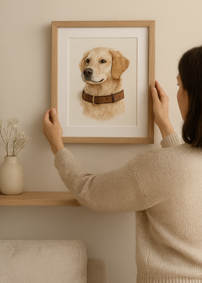 NaszPortret tworzy obrazy z prawdziwymi otworami na obrożę Twojego zwierzaka by mógł „nosić” ją już na zawsze.